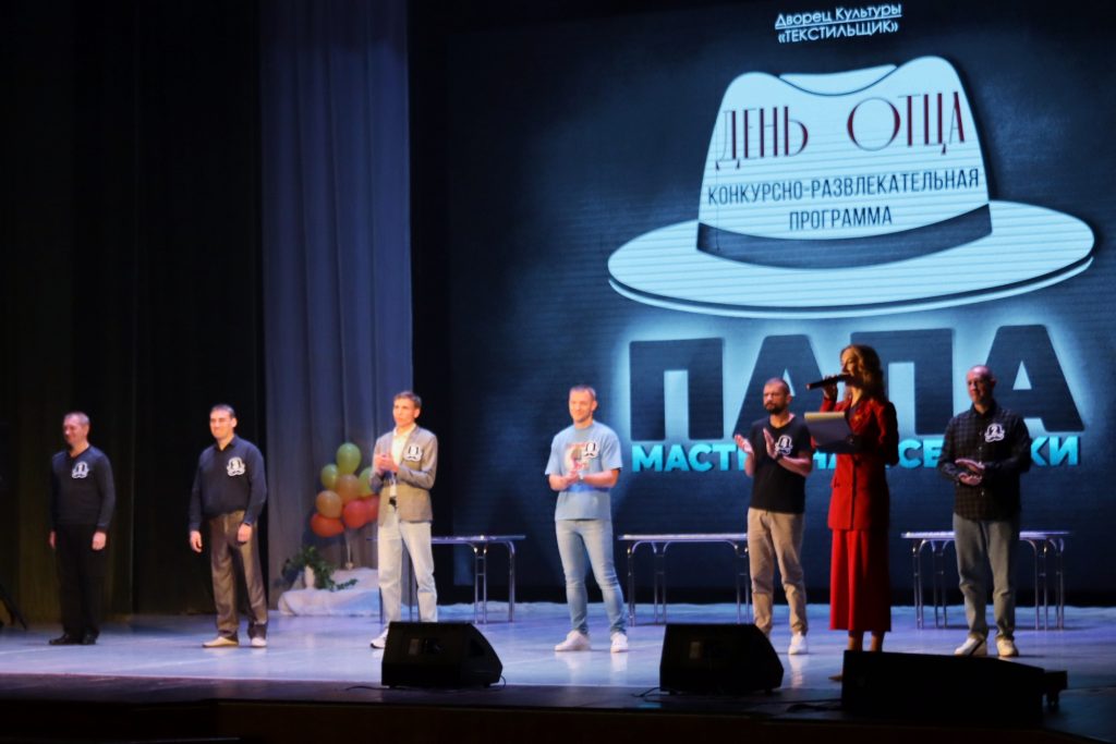 В рамках такого важного праздника во Дворце Культуры “Текстильщик” прошла конкурсно-развлекательная программа “Папа – мастер на все руки”. Свои таланты и умения продемонстрировали прекрасные отцы из семей Кирюхиных, Сенькиных, Девляшовых, Шлыковых, Широковых и Тетюшевых. Шесть захватывающих испытаний открыли перед участниками возможность проявить себя с самой лучшей стороны. Конкурсанты шили, мастерили бусы из макарон, конструировали самолётики, проводили энергичную зарядку, разгадывали слова и даже озвучивали мультфильмы, демонстрируя свои творческие способности.