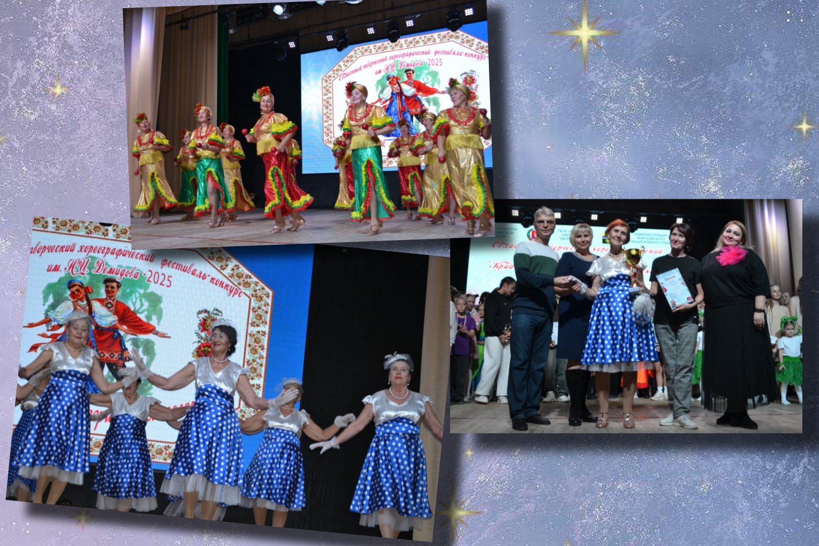 25 октября в г. Жирновск состоялся Областной творческий хореографический фестиваль – конкурс «Край родной, ты творить вдохновляешь» им. Н. И. Демидова, легендарного хореографа и постановщика. Мероприятие признано одним из важных социально-значимых событий в культурной жизни Волгоградской области. Множество ярких, талантливых танцевальных номеров украсили сцену Жирновского РДК. Наши творческие коллективы Дворца Культуры «Текстильщик» – “Релеве”, “Дружба” (рук. Анна Паршина), “Театр танца и души” (рук. Манон Меликова), “Супер Стар” (рук. Татьяна Шепелева) не исключение. Они блистали своими номерами, за что были удостоены высокой оценки жюри: Гран – При, Лауреаты 1, 2, 3 степени, а так же спец – приз «За стремление к творческому долголетию».