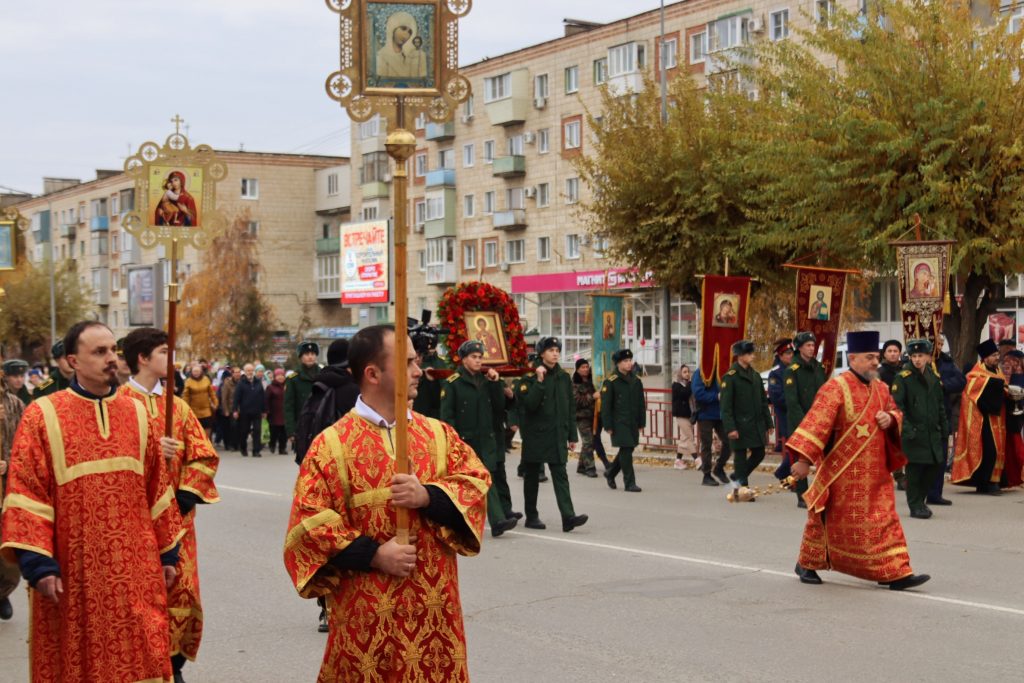 В это время совершался традиционный крестный ход с иконой святого великомученика Димитрия Солунского. Священнослужителям, казакам, военным и простым жителям предстояло пройти от памятника небесному покровителю города до церкви в его честь.